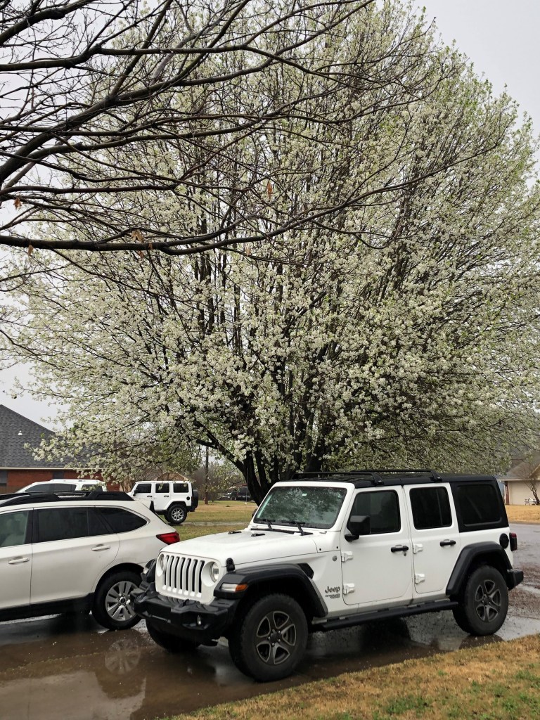 When I came back from work yesterday, I noticed the pear tree planted in our front yard had exploded into bloom. The entire tree was covered with showy white flowers. I had been noticing the buds on the tree for several days but did not think anything about them. I just knew the cold caused the tree to stop shedding its remaining berries that drop on our cars. These are sticky and clump on the bottom of your shoe to be drug into the house. I was glad to be rid of the berries, and pleasantly surprised by the intensity of the flowers. Even those this is my third year in the house, I did not pay much attention to the yard plants until last year. It makes a difference when you know what you are looking for.