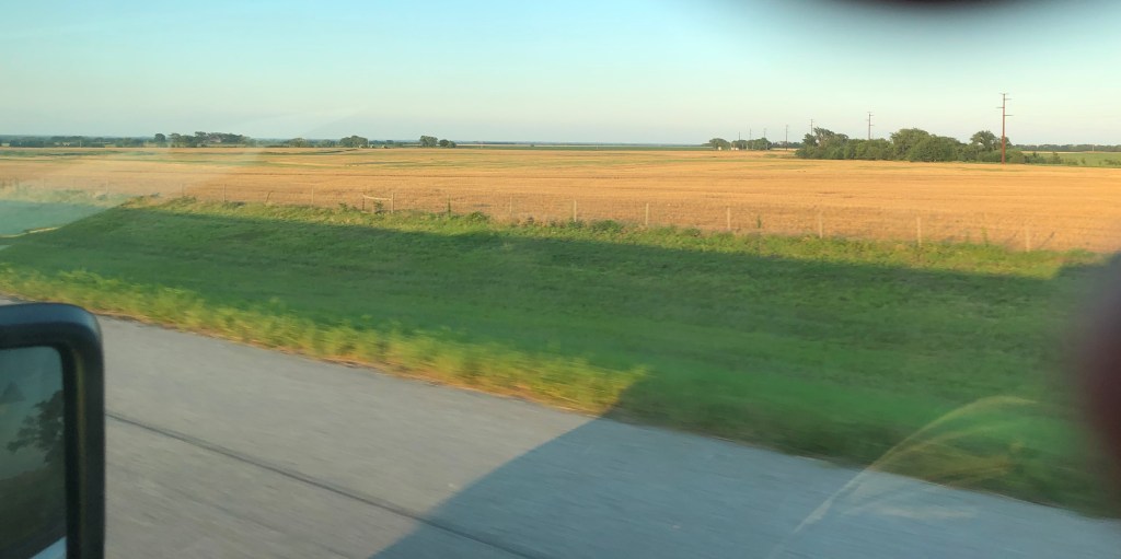 Even while we sped past the vast prairies of the Flint Hills, their competition was also evident. Scattered along the highway were fields of cut wheat that seemed to go on forever. While I never worked the wheat harvest, I knew others who did. They would form great caravans of grain trucks pulling combines from field to field. The wheat harvest would start in Texas and then work its way up to Canada. The harvest always revolved around rain. You needed the right amount (not too much) to make the wheat grow, but it also had to stop long enough to let the wheat dry out. You needed to get into the dry field to cut the wheat before getting more rain. It always seemed to be a juggling act. I was once told if you held your tongue exactly right you might have a good crop.