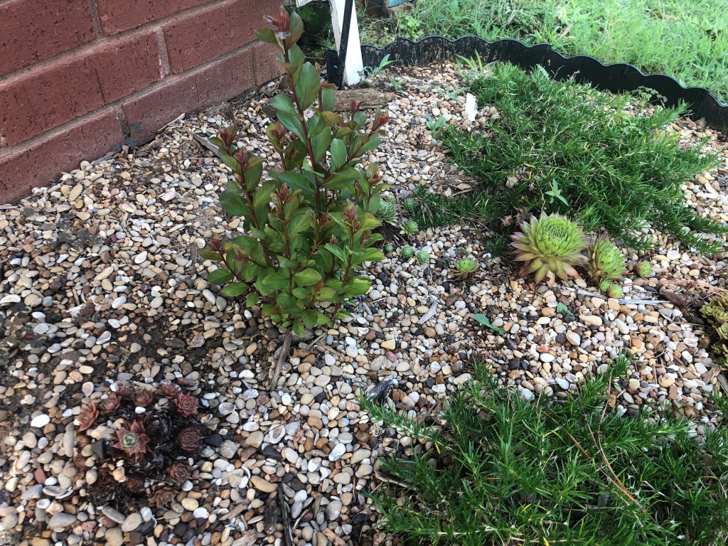 Since our agave had died anyway, Melissa decided we should allow the crepe myrtle to regrow rather than cutting it out again. It had looked nice, and she thought it would provide good shade for the hen-n-chick that would do well in the shade. This time we are planning to monitor the bush. Rather than allowing it to take over the beds, I am determined to keep it pruned and allow it to grow taller with the foliage confined to the top cap. This will provide both protection and sun for the succulents and the creeping phlox that are currently in the bed. At times you just need to bend with the will of nature.