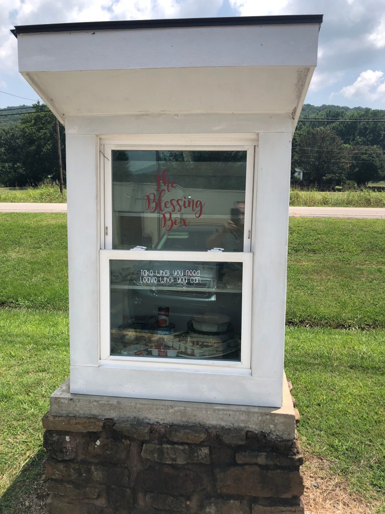 When I looked online, I found similar Blessing Boxes have been popping up across America since at least 2016 and have become somewhat of a movement. These neighborhood boxes contain things like food, soap, diapers, and other necessities. People who have items to donate fill (and refill) the boxes, while people who need items take them. Many of the boxes are emblazoned with the slogan, “Take what you need, give what you can . . . above all, be blessed!” These boxes are another way to provide a blessing to those in need.