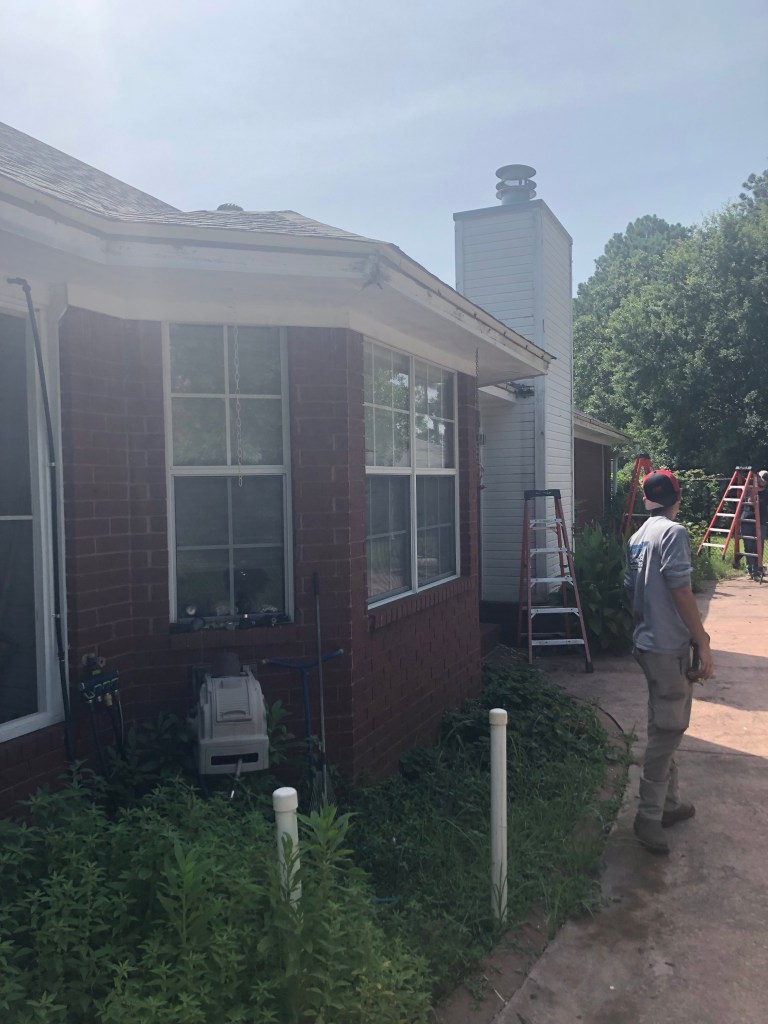 We got the next phase of roofing at our house yesterday as the crew showed up to install the new gutters. They began by removing the old gutters and the brackets that held them in place. After the gutters were installed, they attached a new leaf guard system to replace the old one. The leaf guards were black rather than the silver we had previously, and the gutters were a stark white which (luckily?) matched the existing trim. While the gutter crew did not arrive as early nor stay as late, they were able to get most of the work done in one day. I needed to have repairs done on two of my soffit joints and the wood needed to be purchased from the lumber yard and they had to return. While the new system looks good, it also pointed out that I need to paint the eaves of our house.