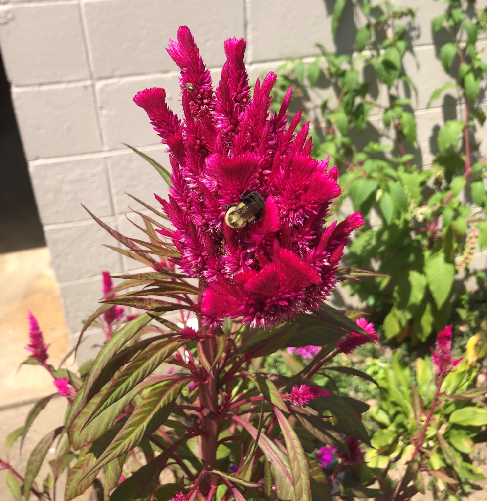 Thoughts: Like many things in life, today’s stories are connected. Going to city hall led to the disposal box, going to the disposal box led to seeing the cockscomb, seeing the cockscomb led to the bee, and the bees are under attack by the hornets. This is an illustration of how we are all connected by the increasing globalization of our planet. Being connected has its drawbacks, as the virus spread to a pandemic less than two months after being identified. Being connected also has benefits, as digitization and the internet provide research avenues impossible two decades ago and in part led to the rapid development of a vaccine. Humans developed as social animals who need to feel connected. Whether we do this by touch and intimacy or through social media, being connected is critical to our understanding of self. Do the work. Follow the science. Change is coming and it starts with you.