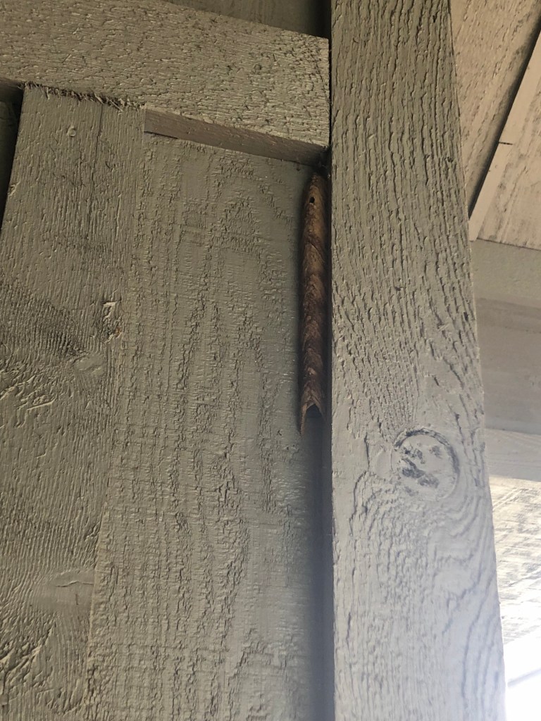 I have noticed a long tube-like structure above the entrance where I work for several weeks. I was unsure of what this was as I had never seen one before. My curiosity finally got the best of me over the weekend, and I did a google search with my phone on the tube. I found it belonged to a type of mud dauber. The mud dauber nests that I am used to are a single cell, but this one was about seven inches long. I have never been fond of wasps as I have found they are aggressive when guarding their nests. When I was director of the rural camp, I was constantly trying to get rid of wasp nests and the angry wasps that guarded them. Luckily there are spray cans that shoot a spray twenty-seven feet to take out the wasp nests that seemed to accumulate under the eaves of our buildings.
