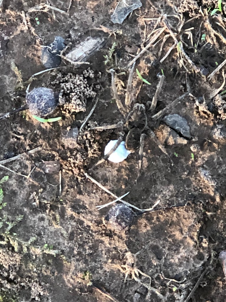 When I looked online, I found the Carolina Wolf Spider (Hogna carolinensis), is commonly found across North America. It is the largest North American wolf spider, typically measuring .4-.8 inches (18–20 mm) for males and about 1-1.4 inches (22–35 mm) for females. The wolf spider is mottled brown with a dark underside and males have orange coloration on their sides. Wolf spiders live in either self-made burrows or ones they find. Like all wolf spiders, H. carolinensis does not make a web to catch prey but instead hunt by ambushing prey from their burrows. These spiders are particularly known for the females carrying their egg sacs on their bodies during the incubation period (note the white sac in the picture). The Carolina wolf spider also has a unique type of venom that both paralyzes their prey and helps prevent microbes from their prey from infecting them. Unlike the insects it preys on, the wolf spider can thermoregulate, which is important for animals that inhabit desert ecosystems or locations with large temperature swings. That would include Arkansas.