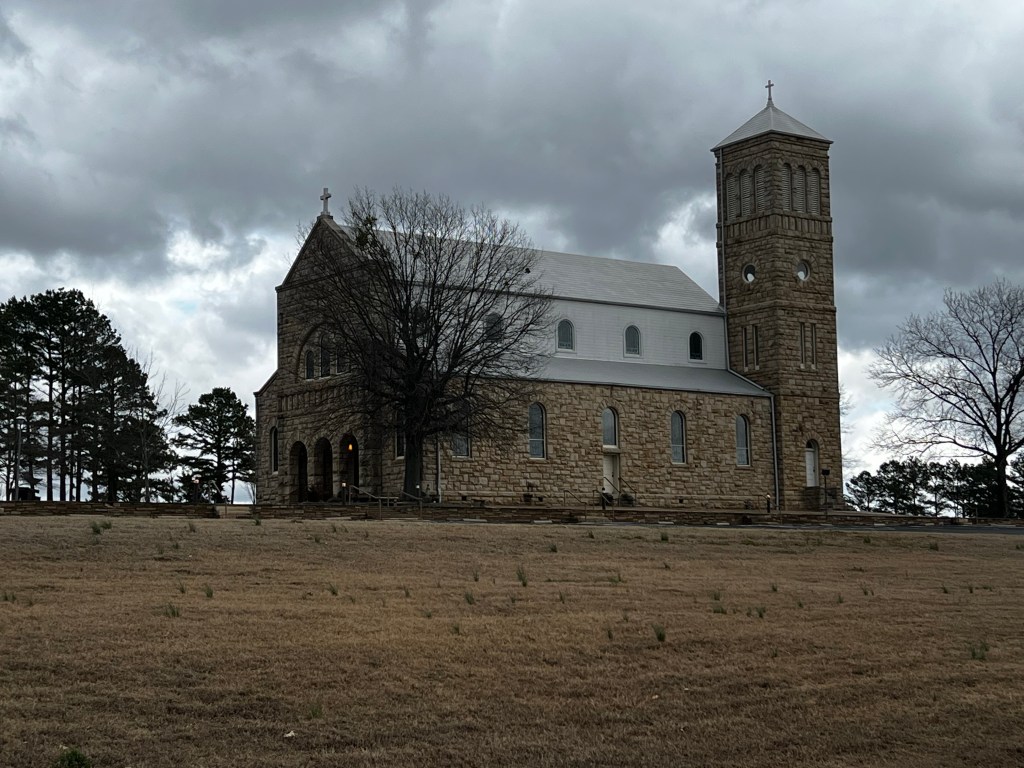As I was returned home after encountering the nesting pair of bald eagles last week, I came across the city of Altus. While I have ignored this area while zooming down the interstate, this time I approached the town driving the winding roads coming up from the south. I have always enjoyed looking at old architecture, and even filled a short tenure as an architectural historian in Utah. I wound thorough the historic (but small) downtown and then started the climb up the hill toward the wineries. As I reached the crest of the hill, I saw a large stone church and cemetery that dominated the summit.