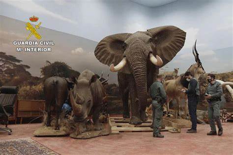 I ran across a report in the local newspaper about a taxidermy museum located in a warehoused in Bétera, Spain, which held 1090 animals. While this is an impressive number of animals by itself, this private collection included 405 protected species. The collection includes the scimitar oryx (North African oryx), which the International Union for Conservation of Nature (IUCN) declared extinct in the wild, the endangered Bengal tiger, and the critically endangered addax (white antelope). They found specimens of lion, cheetah, leopard, snow leopard, lynx, polar bear, and white rhinoceros. The collection contained crocodile skin chairs, stools made of elephant feet, and 198 ivory elephant tusks. It is the largest discovery of protected taxidermy specimens in Spain and one of the largest in Europe. Spain’s Civil Guard estimates the worth of the collection at 29 million euros (US$31.5 million).