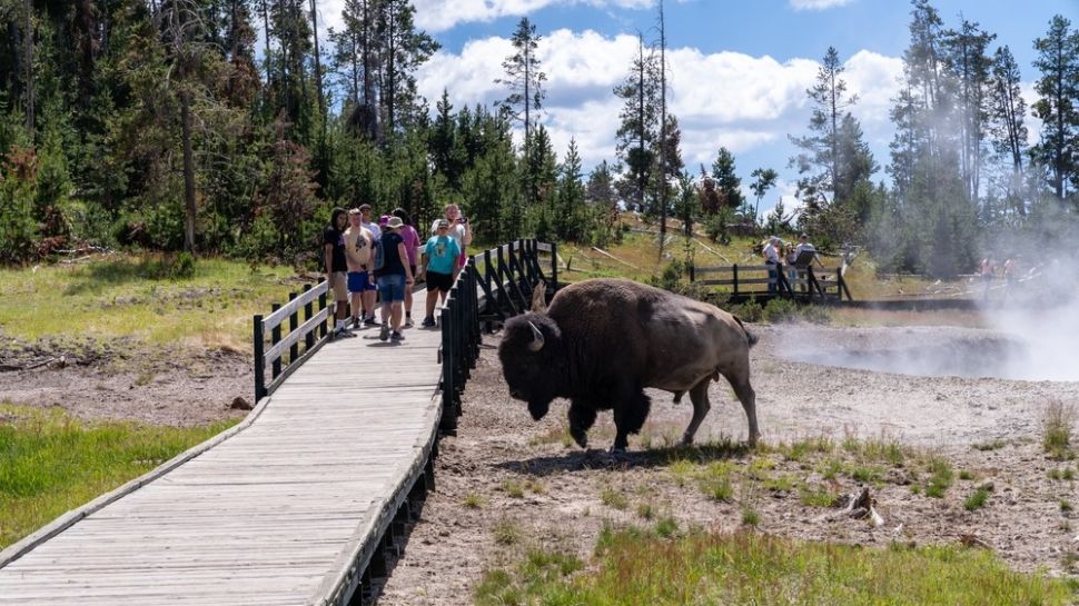 While bison once roamed in vast herds, the species was nearly extinct from commercial hunting and slaughter in the 19th century and introduced bovine diseases from domestic cattle. The population was more than 60 million in the late 18th century, but the species was culled to just 541 animals by 1889. Recovery efforts expanded in the mid-20th century, with a resurgence to roughly 31,000 wild bison by 2019. The population was primarily found in a few national parks and reserves, but reintroductions allow the species now freely roam wild in several regions in the US, Canada, and Mexico, and they have been introduced to Yakutia in Russia. The Indigenous tribes of North America have had cultural and spiritual connections to the American bison for millennia and the bison is the national mammal of the US. The National Park Service takes visitor and animal safety seriously and the front page of the Yellowstone website tells you to stay 25 yards (22.8 m) from bison and elk and 100 yards (91.5 m) from bears and wolves because the park’s animals “are WILD and DANGEROUS” (emphasis NPS). Despite the precautions, warnings, and guidelines, bison attacks are on the rise inside the park.