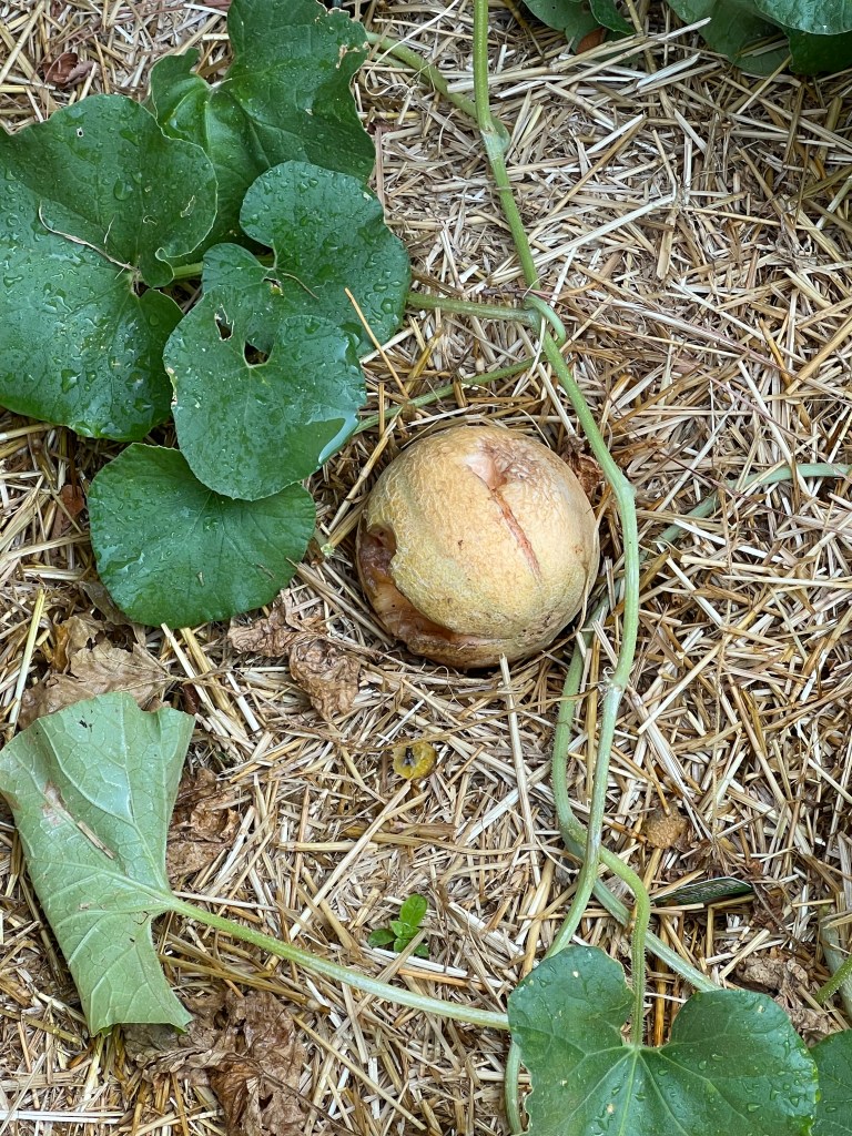 When I went out to water my plants later, I saw the night critters had been active again. I have had problems with something eating the tomatoes and strawberries but assumed these were the birds, especially since I have watched the blue jays flying out of my strawberry patch. I have had problems with the soot cage being opened and knocked to the ground and have assumed it was the squirrel that I have seen nosing around the feeder. I even had the raccoon that got onto the porch and into the bird seed bags forcing me to confine it in 5-gllon buckets. With the heat most of my vegetables have only produced sparsely, but my pride has been the two small cantaloupes that have been growing on the vine near the house. While one is still green, the other was beginning to ripen. While I do not know, I assume the armadillo got to it, as it was torn off the vine and there were holes where something had chewed through the rind. Maybe I should have left Zena outside to bark after all.