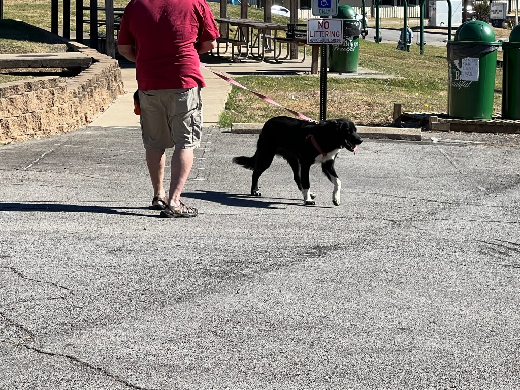 Yesterday I was able to take Zena to the trainer for a lesson. We call him the “treat man” because she gets copious amounts of treats as rewards for doing what she is supposed to do. She had not been to train in several weeks due to a variety of issues and I was hoping she would do alright. I walk her in the mornings and although I know she has done fine by my standards, these were below the expectations of the trainer. We showed up right on time and he was waiting in the drive of his house. He told me to follow him, and we took off for the park. Today’s lesson was going to be walking outdoors and encountering other people and dogs. This is an area Zena and I have struggled with, and I was anxious to see what the treat man would do different than me.