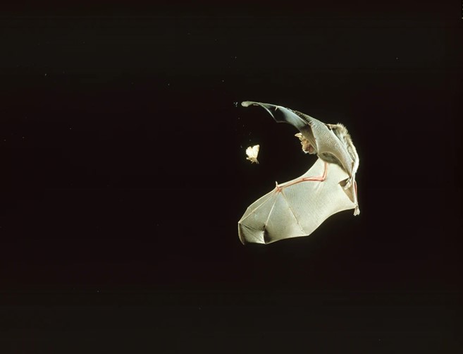 When I looked online, I found echolocation is used by bats and other animals to determine the location of objects using reflected sound. This allows bats to navigate in pitch darkness to hunt, identify friends and enemies, and avoid obstacles. Echolocation allows bats to fly at night and in dark caves. Bats seem to have developed the skill to locate night-flying insects. Bats make the sounds in their larynxes and emit them through their mouths. Fortunately, most are too high-pitched for humans to hear as some bats can scream at up to 140 decibels, or as loud as a jet engine 30 miles (45 km) away. Bats can use echolocation to detect an insect up to 5 miles (7.5 km) away, work out the insect’s size and hardness, and then to avoid limbs and wires as fine as a human hair. The bat cranks up the calls to pinpoint the prey as it closes in for the kill. To avoid being deafened by its own calls, a bat turns off its middle ear just before calling, then restores its hearing to listen for the echoes.