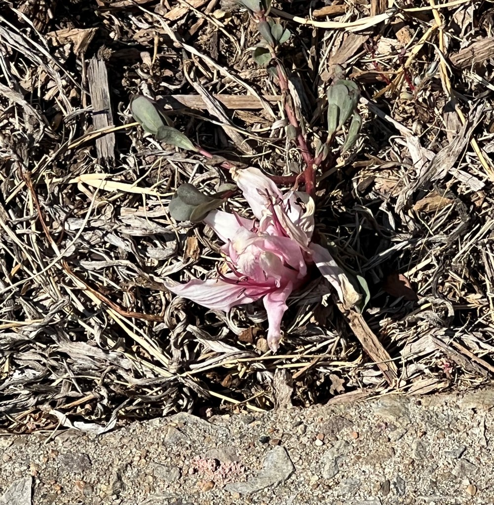 Last week I noticed a beautiful flower had bloomed amid the weeds I have allowed to serve as groundcover in the mailbox planter. The bed has been planted with types of bulbs that sprout and flower at different times of the year. With the hot summer most of the cover (including weeds) had died back. I kept thinking I needed to plant something, but I have also watched as other house owners in the neighborhood had been planted annuals. They never lasted more than a couple of weeks before they died. The weeds that are taking over in my planter appeared to be succulents, and I was surprised Melissa did not like them. When I asked, the reason was that they had not been planted by her (or her mom?) and just grew on their own. She knew exactly what the plants and the flower were, purslane.