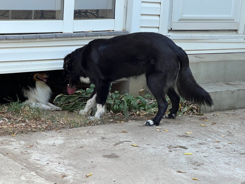 We picked Melissa up and made a cursory check to make sure she was alright, then got everything into the house. Eddie had come in to see the commotion and then Zena and Eddie went to the back yard to get reacquainted. Zena was excited and began to chase Eddie around the yard and play fight with him. When they first met, Zena was half the size of Eddie but now Zena towers over him. Zena continued her rough and tumble play until Eddie had enough. When Eddie ran it just egged Zena on, thinking it was still a game. Then Eddie realized he could run under the porch and Zena was too big to squeeze in after him. Then Eddie popped out the other side and the case was on again. This happened several times until Eddie went back under the porch and waited until Zena settled down. When he did come out, they were fine. By the time we left they had again gotten used to each other and the rough and tumble was over. Hopefully it will stay that way during our trip.