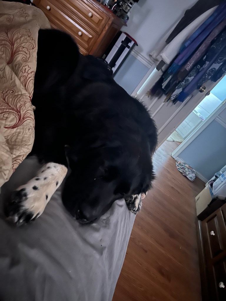 I had worried that Zena may have felt we abandoned her, or even not remember us after a three week absence, but it was a far different response. When we arrived to pick her up, we had agreed that she should come outside rather than meeting her in the house. That was a good thing as she got excited and peed on the lawn (better than in the house). Arriving home, she rushed inside to look through her haunts to make sure nothing had changed, but she seemed sad that Cousin Eddy was not there to greet her. The next day Zena became very clingy, constantly coming over to lay her chin on my leg while staring at me. I kept thinking she wanted something and would ask if she wanted to go outside. Instead, she just wanted to know we were still there for her. Zena turned nine months old this weekend. Melissa had read this was her “teenage time”, and she was entering into her protective phase. She stayed close all day and actively growled whenever she heard a “threatening” noise. That night she jumped up on the bed and squeezed between my leg and the edge. It was good to be home.