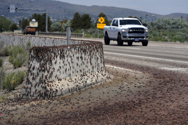 Last Thursday my local newspaper carried an AP story of the blood-red crickets that had invaded a town in north central Nevada. Tens of thousands of Mormon cricket eggs buried about an inch deep in the soil began to hatch in late May and early June. The cricket invasion has especially hit the small town of Elko along Interstate 80. The crickets stick to tires and the bottoms of shoes and their carcasses are everywhere. They blanket highways and scuttle over barriers seeking food. They are crushed under the tires of trucks creating something like a blood-red oil slick. Residents are trying several innovative ways to rid the ground of insects. A local hospital has hired four temporary part-time employees to clear the campus to allow patients to enter the building. Residents use brooms and leaf-blowers to move the live and dead crickets from their lawns and walkways. While the adult crickets only live long enough to mate (males) and lay eggs (females), they continue to hatch in waves from May to early August.