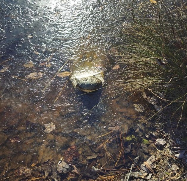 When I went online, I found that while mammals go into hibernation, reptiles go into brumation. Both are a type of dormancy or a period in an organism’s life cycle when growth, development, and (in animals) physical activity are temporarily stopped. While warm-blooded animals (endotherms) and animals that vary between self-regulating body temperature and allowing the surrounding environment to affect it (heterotherms) are described scientifically as hibernating, the way cold-blooded animals (ectotherms) like alligators (Alligator mississippiensis) become dormant is different. The word brumation was coined in the 1920’s to explain this as a very different metabolic process than hibernation. In colder climes reptiles generally begin brumation in late autumn (times depend on the species). They wake up to drink water and then return to their dormant state and can go without food for months. Reptiles may eat more than usual before the brumation time but eat less or refuse food as the temperature drops. The brumation period is anywhere from one to eight months depending on the air temperature and the size, age, and health of the reptile. Like hibernation, brumation is triggered by a lack of heat and a decrease in the hours of daylight in winter.