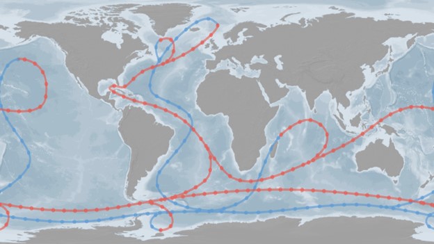 When I went online, I found the Atlantic Meridional Overturning Circulation (AMOC) is a system of surface-level and deep currents in the Atlantic Ocean which are driven by changes in atmospheric weather and ocean circulation driven by changes in temperature and salinity. These Atlantic currents make up one half of the global thermohaline circulation that encompasses the flow of major ocean currents. The other half is the of thermohaline circulation is the Southern Ocean overturning circulation, and both play critical roles in the climate system. The AMOC is characterized by a northward flow of warm, salty water in the upper layers of the Atlantic, and a southward flow of colder, deep waters. These currents are linked by regions of overturning in the Nordic and Labrador Seas and the Southern Ocean around the Antarctic. Climate change has the potential to weaken the AMOC through increases in ocean heat content and elevated freshwater flows from the melting ice.