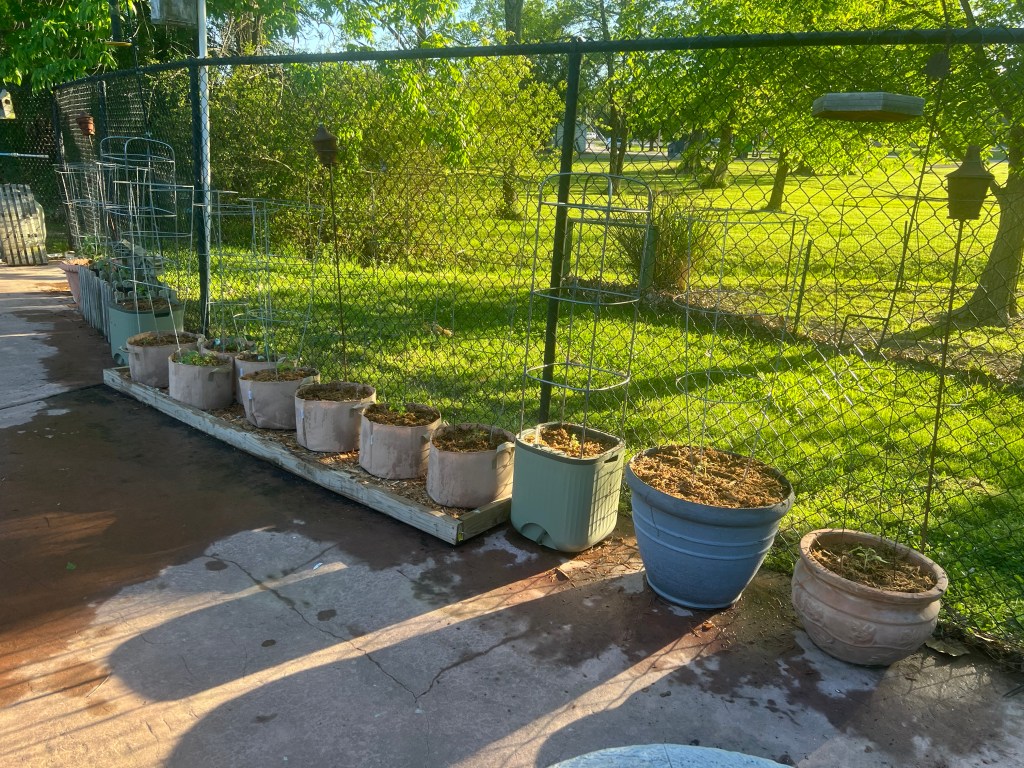 I had spent time and energy bringing my plants to germination, so I felt it was worth the time to spend half a day researching how to Loki-proof my tomatoes and peppers. It turned out there are two ways the pundits said work best. One is to put a fence around the plants and the second is to use smells (like cayenne pepper and vinegar) to keep him away. I put up a fence to keep Loki bask from the plants and then sprayed vinegar in the soil around the small plants. I decided to wait on the cayenne as it was forecast to rain and that would dilute the effect. The next morning Melissa watched as Loki again got into the containers. She also noticed he was not attracted by the plants themselves. It was the small white tags I used to mark what was being grown (Loki is a chewer). Melissa moved the tags to the rear of the containers and beyond his reach through the fence. This will no doubt become a constant vigil.