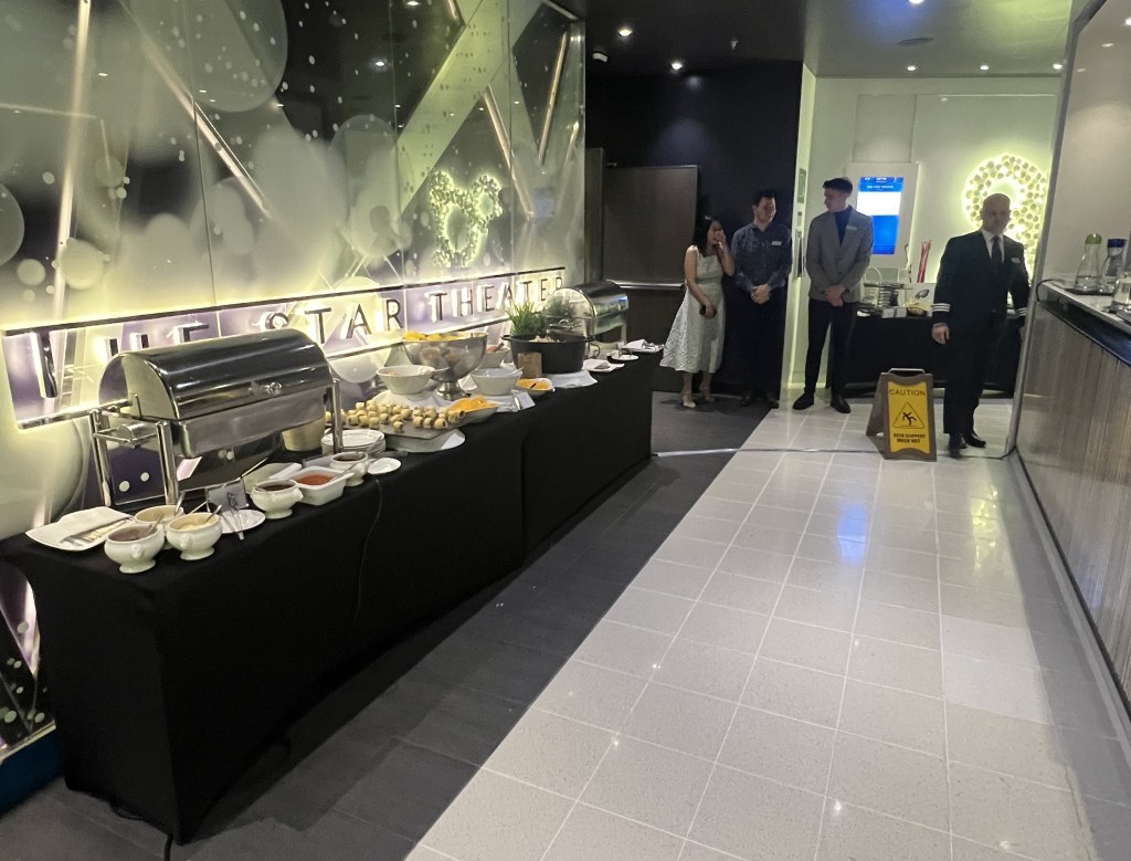 Our only choice was to go to bed early and wake up in time for the start of the game at 1:30 am.  This worked, and we woke up in time to see the coin toss.  I made it through the first half (24-0) but refused to watch 45 minutes of half-time extravaganza and went to sleep.  The score was exasperated by the fact we were not getting any of the commercials (soccer and MMA previews only) on the special sports channel.  Melissa lasted through the third quarter then also gave up.  Her sister did inform her of the outcome at the end of the game.  The ship planned their own Super Bowl party for later that evening.  The game was broadcast in the theater on the movie screen.  Most had not stayed up late and were not aware of the score.  For them it was great, for me knowing the score was another form of torture.  There was a bright spot.  The cruise made hundreds of bags of popcorn and there were two lines of tables placed in the hall.  One was held basic football food (nachos, wings, chips and dip) while the other was filled with a wide assortment of finger desserts.  I did not partake of the food and only lasted a quarter rewatching the game, but I complemented them on their buffet.