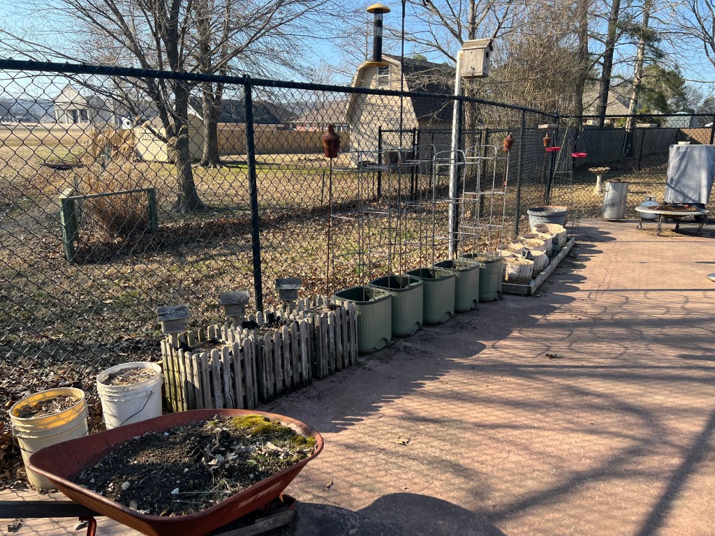 It was near or above 70’sF (21C) most of this week, and that after dropping to single digits a week ago. Warmer temperatures have got me thinking about my garden. This time last year, I was planning the garden layout and had seedlings under the grow lights. My main push was trying to collect enough wood, fill, and dirt to create the four Hügelkultur raised beds. Every step of the process turned out to be more work than I had imagined (and I imagined a lot of work). This year will be more tweaking the beds and growing methods I already own. When I started four years ago, I grew everything in container pots. These were mostly 5-gallon (19-L) buckets, along with several wooden planters left from my mother-in-law and a few large flowerpots. Now I have moved almost entirely away from my old containers. This year’s plantings will go into a mix of raised beds and grow bags, along with the three in-ground beds. I cleaned out the different planting medium when I shut down last fall. I had also purchased three additional (5 total) rolling, self-watering tomato planters that I put together. Then it was a matter of planning how to proceed, then cleaning up and placing the different containers along the back fence of my patio.