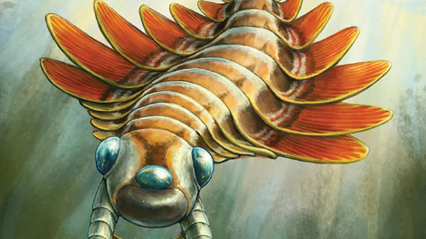 When I went online, I found Mosura fentoni is an extinct species of hurdiid radiodont (marine arthropod) from the Cambrian Burgess Shale in British Columbia, Canada. This is the only species in the genus Mosura, and is known from sixty specimens collected between 1990 and 2022. The specimens were discovered in the Raymond Quarry and Marble Canyon localities, with the majority being placed in the invertebrate paleontology collection of the Royal Ontario Museum (ROMIP). The specimens range from 0.59 to 2.40 inches (1.5 to 6.1 cm), making this one of the smallest radiodonts known. The head has three eyes with two on short stalks and a third on the head between them. The 26 body segments comprise the head, the four-segmented neck, and the trunk. Like other radiodonts, the body bears pairs of swimming flaps, which are considerably larger on the anterior (mesotrunk) than on the posterior (posterotrunk). The gills are very large compared to body size. The specific name (fentoni) honors Peter E. Fenton and his work at the ROMIP. The generic name is from the Japanese name of Mothra (Mosura), the fictional moth-like kaiju monster featured in films by the Japanese company Toho and references the animal’s moth-like appearance.