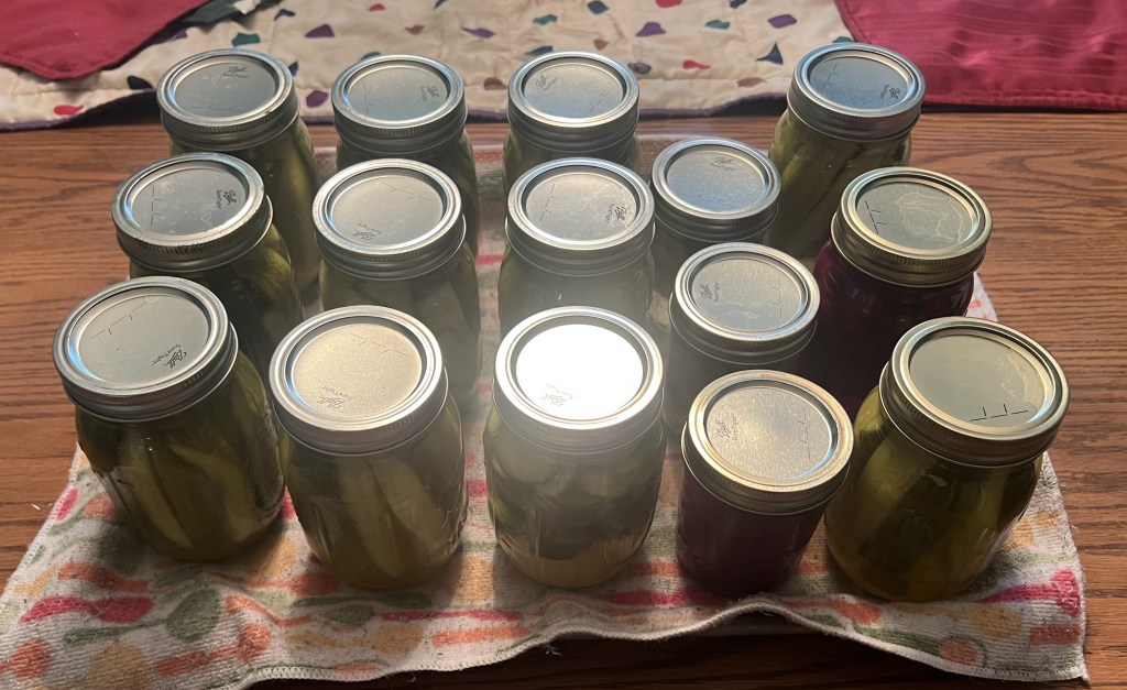 THOUGHTS: It is often claimed that pickling cucumbers was developed for workers building the Great Wall of China, although another hypothesis is that they were first made as early as 2030 BC in the Tigris Valley of Mesopotamia. Ancient sources documented awareness around the nutritional benefits of pickling and the perceived beauty benefits of pickles. Cleopatra credited pickles with contributing to her health and legendary beauty. Perhaps it is a good thing to have 15 jars of pickles. The best part is sharing produce with others. Act for all. Change is coming and it starts with you.