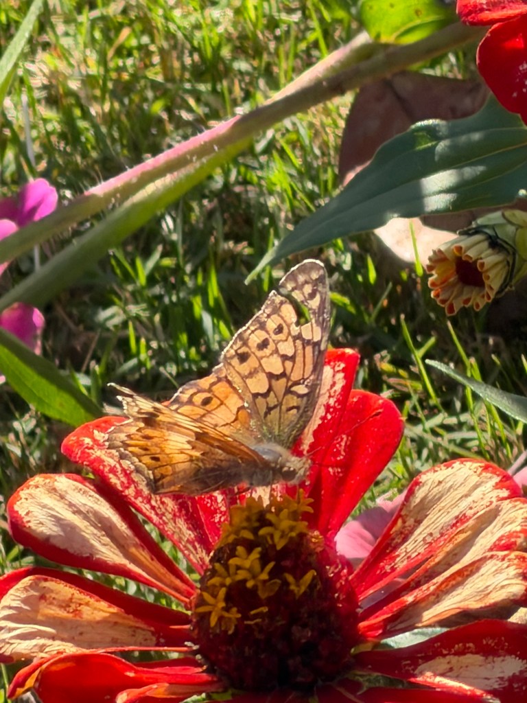 While the variegated fritillary is nomadic, it is not (officially) migratory like the monarch. Instead, it overwinters in its caterpillar stage in the leaf litter, seeking shelter and entering a dormant state (diapause). In warmer climates, adult butterflies may also overwinter. In Arkansas the adults need to either migrate south or they will die (freeze). Caterpillars can survive Arkansas’ winter temperatures and will emerge from their hibernation to form cocoons (pupate) in the spring. The survival of the caterpillars (or adults farther South) depends on factors like predation, temperature, and the amount of insulation provided by leaf litter. When weather conditions improve in the Spring the caterpillars emerge from their winter hibernation to continue their life cycle. While I was planning on clearing the bed and scattering the seed, perhaps I should wait until new life emerges in Spring.
