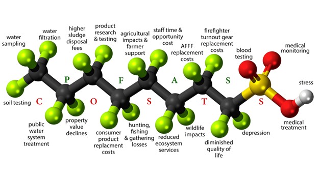 When I went online, I found PFAS, or per- and polyfluoroalkyl substances, are a family of man-made chemicals used for their water and stain resistant qualities in products like clothing, carpet, nonstick cookware, packaging, and firefighting foam.  PFAS are a group of synthetic organofluoride chemical compounds that have multiple fluorine atoms attached to an alkyl chain.  Different organizations use different definitions for PFAS, leading to estimates of between 8,000 and 7 million chemicals within the group.  The family includes 5,000 compounds which remain in both the environment and human body over time (persistent).  The chemicals have been linked to types of kidney and testicular cancers, lower birth weights, harm to immune and reproductive systems, altered hormone regulation, and altered thyroid hormones.  The US Environmental Protection Agency (EPA) toxicity database (DSSTox) lists 14,735 unique PFAS chemical compounds while 7 million are listed in PubChem.