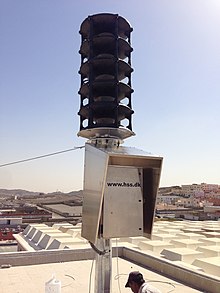 When I looked online, I found a civil defense siren, or tornado siren, is a siren used to provide an emergency alert to the general population of approaching danger. It is sometimes sounded again to indicate the danger has passed. Sirens in small municipalities can also be used to alert the fire department when they are needed. These sirens were originally designed to warn city dwellers of air raids during World War II, were later used to warn of a nuclear attack, and are now primarily used for natural disasters, like a tornado. Modern sirens can develop sound levels up to 135 decibels at 100 feet (30 m) and by varying tones or binary patterns of sound, different alert conditions can be called. The generalized nature of sirens led to many of them being replaced with more specific warnings, such as the TV and radio broadcast-based Emergency Alert System and the Cell broadcast-based Wireless Emergency Alerts and EU-Alert mobile technologies.