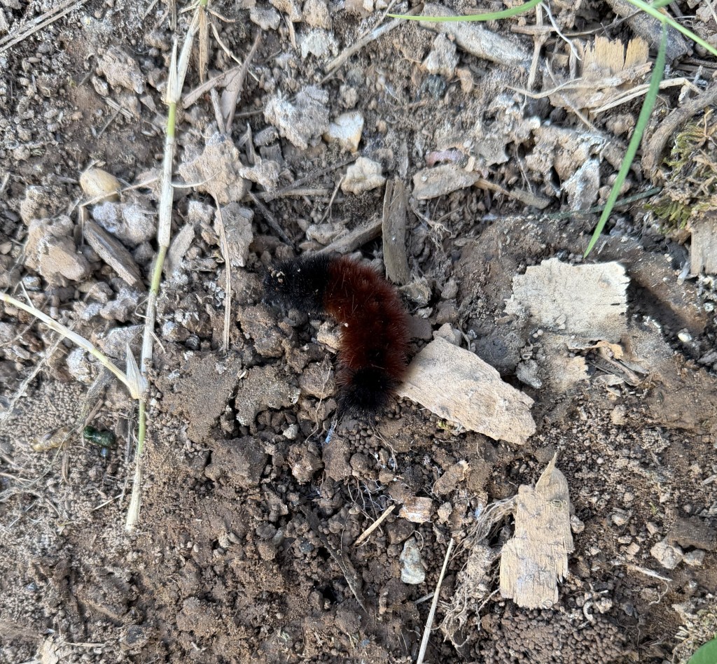 Folklore in both Canada and the US holds that the relative amounts of brown and black hair on a woolly bear larva indicate the severity of the coming winter.  If the brown band is wide, winter weather will be mild.  If the brown band is narrow, the winter weather will be severe.  A variation of this story says the color of the stripes predicts winter weather, with darker stripes indicating a harsher winter.  Another version of this belief is that the direction the Isabella crawls indicates the winter weather, with the caterpillar crawling south to escape colder weather.  There is no scientific evidence for weather prediction and hatchlings from the same clutch of eggs can display considerable variation in their color banding.  The larva’s brown band tends to widen with age as it molts.  Since the 1970’s, several locations in the US hold woolly bear festivals in the fall.